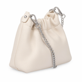 Lara Cross Body Bag in Off-White Italian Leather - silver metalwork
