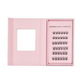 A typical application starts with the most extended lash placed onto the outer edge of the eyelashes and then reduces in size as you move inwards. (Donna would normally wear 3 clusters on each eye, decreasing in size towards the middle of the eye.)