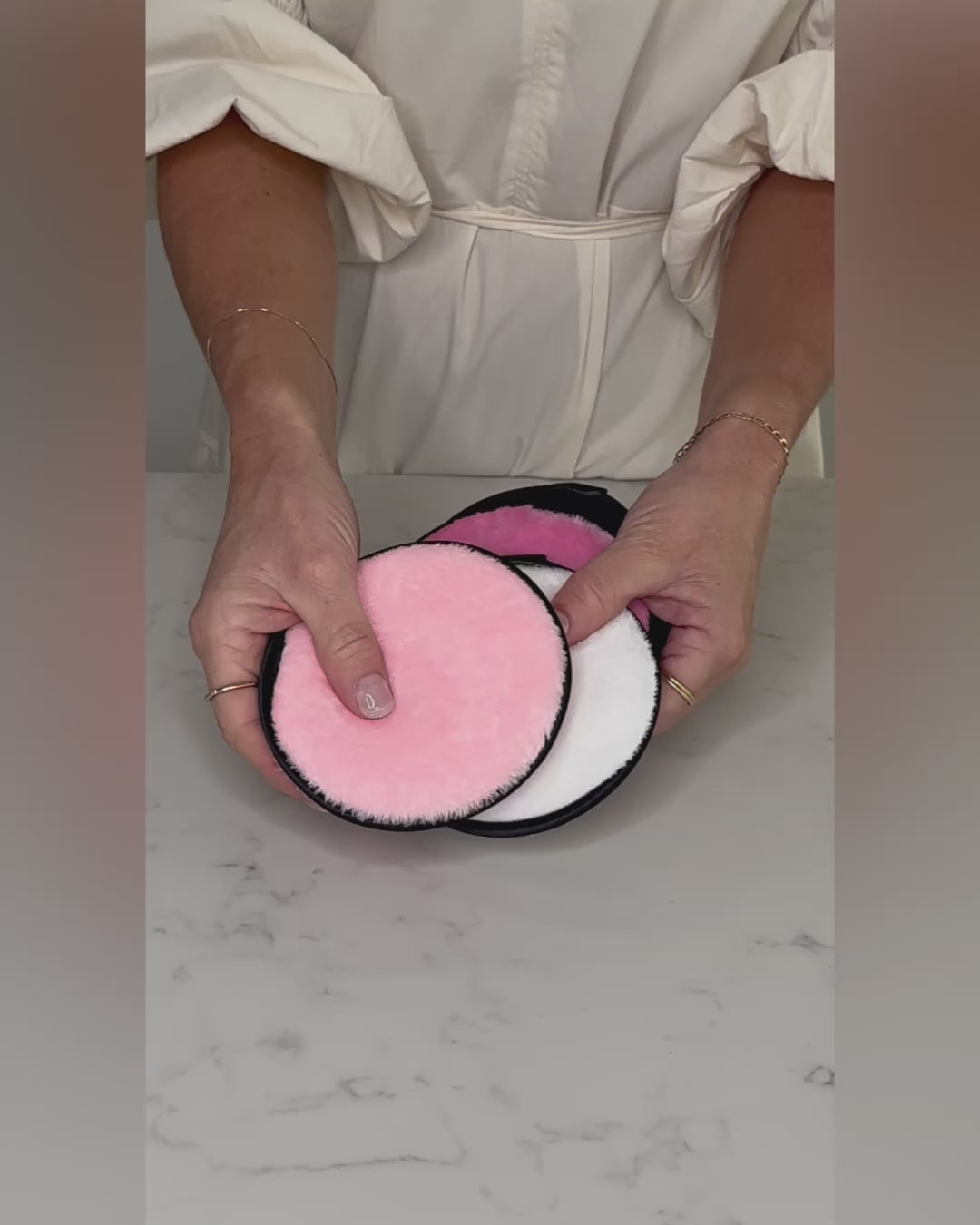 Say goodbye to harsh wipes and hello to effortless cleansing with our Makeup Be Gone | Glow & Go Pads. This set of 4 ultra-soft, reusable makeup remover pads gently lifts away all traces of makeup using just water, even stubborn mascara!